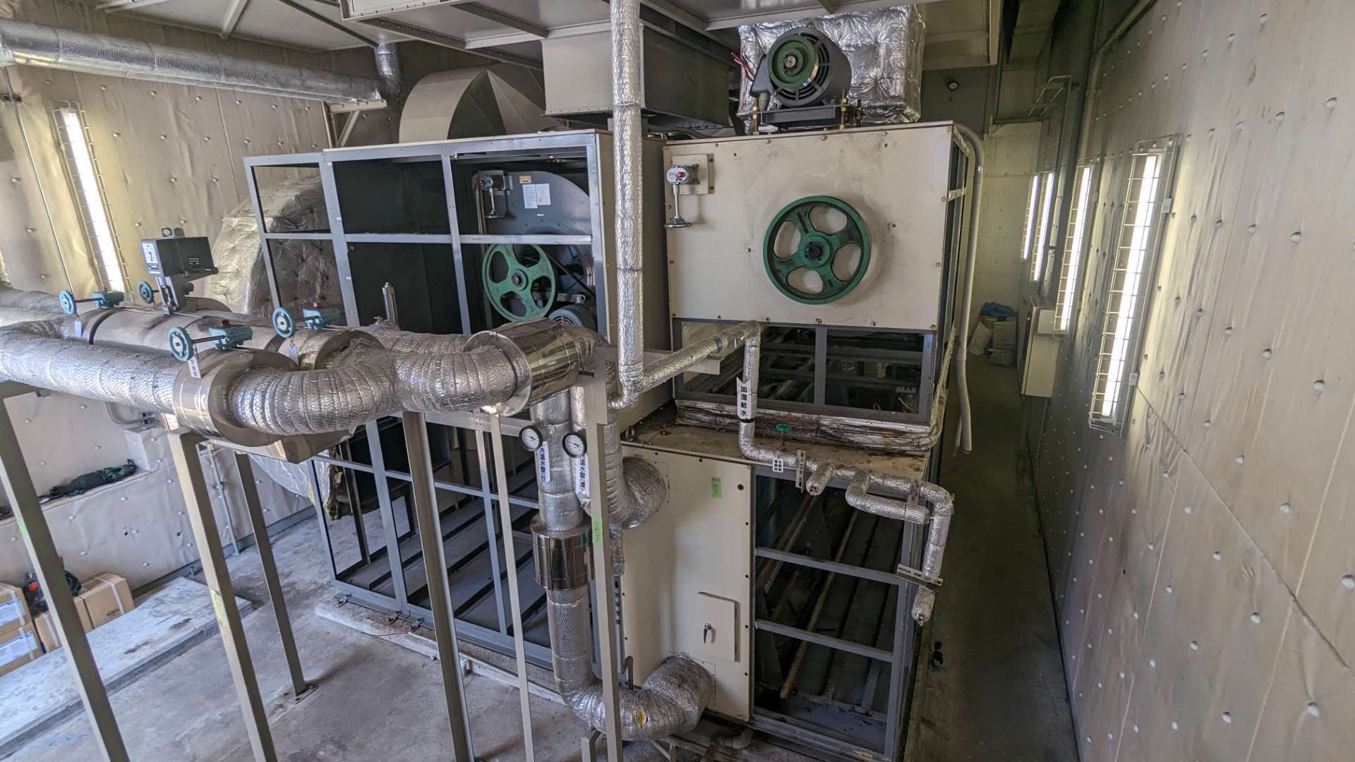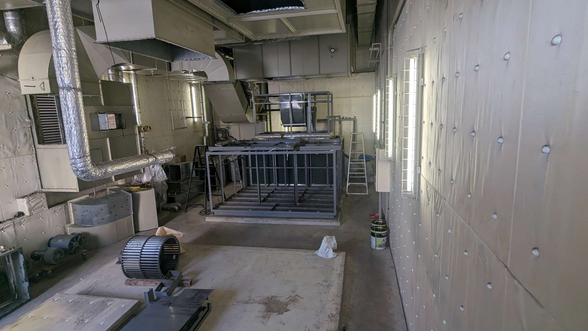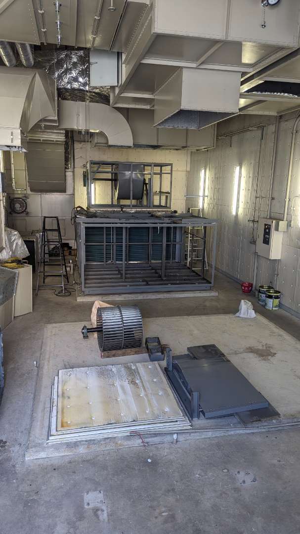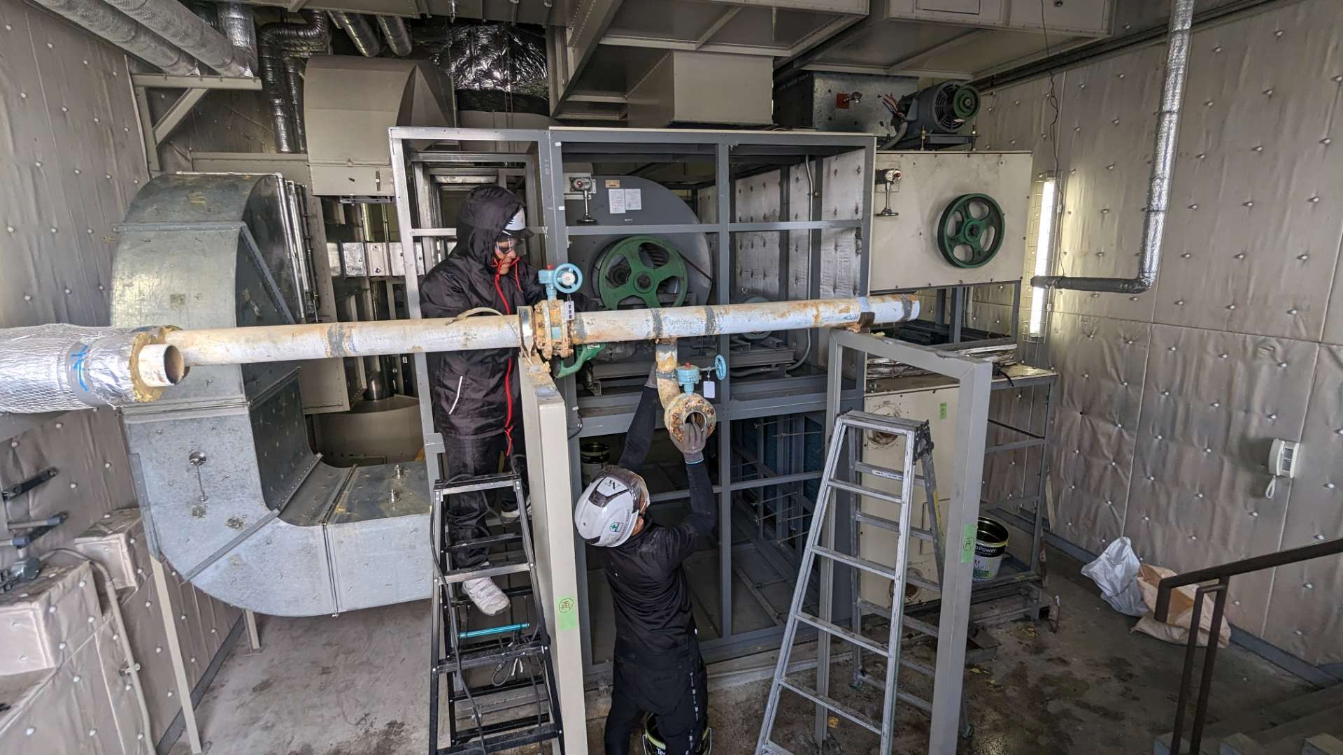季節の建物の機器解体とあって、周辺には可動している機器、電気盤等もあり、それらを破損させないように、周囲の確認の徹底、養生も行い、作業前に作業者全員で確認、周知をして作業を、行いました。